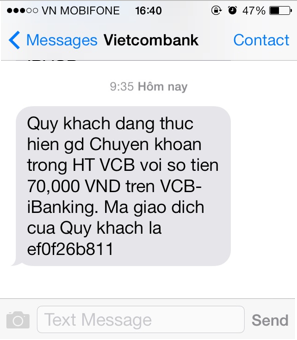 Tin nhắn xác nhận giao dịch của Vietcombank
