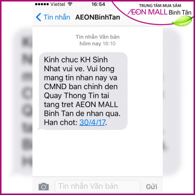 Tin nhắn Chúc mừng sinh nhật khách hàng của Siêu Thị Aeon