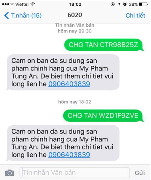 Theo đó, tổng đài sẽ gửi lại tin nhắn xác thực, khách hàng sẽ biết sản phẩm mình đã mua có phải hàng chính hãng hay không