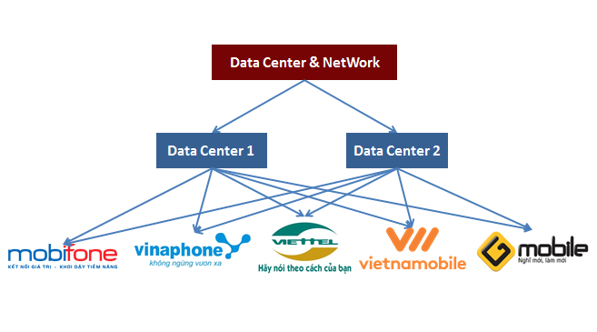 Bên dưới là hạ tầng mạng (Datacenter) và đường truyền (Network).